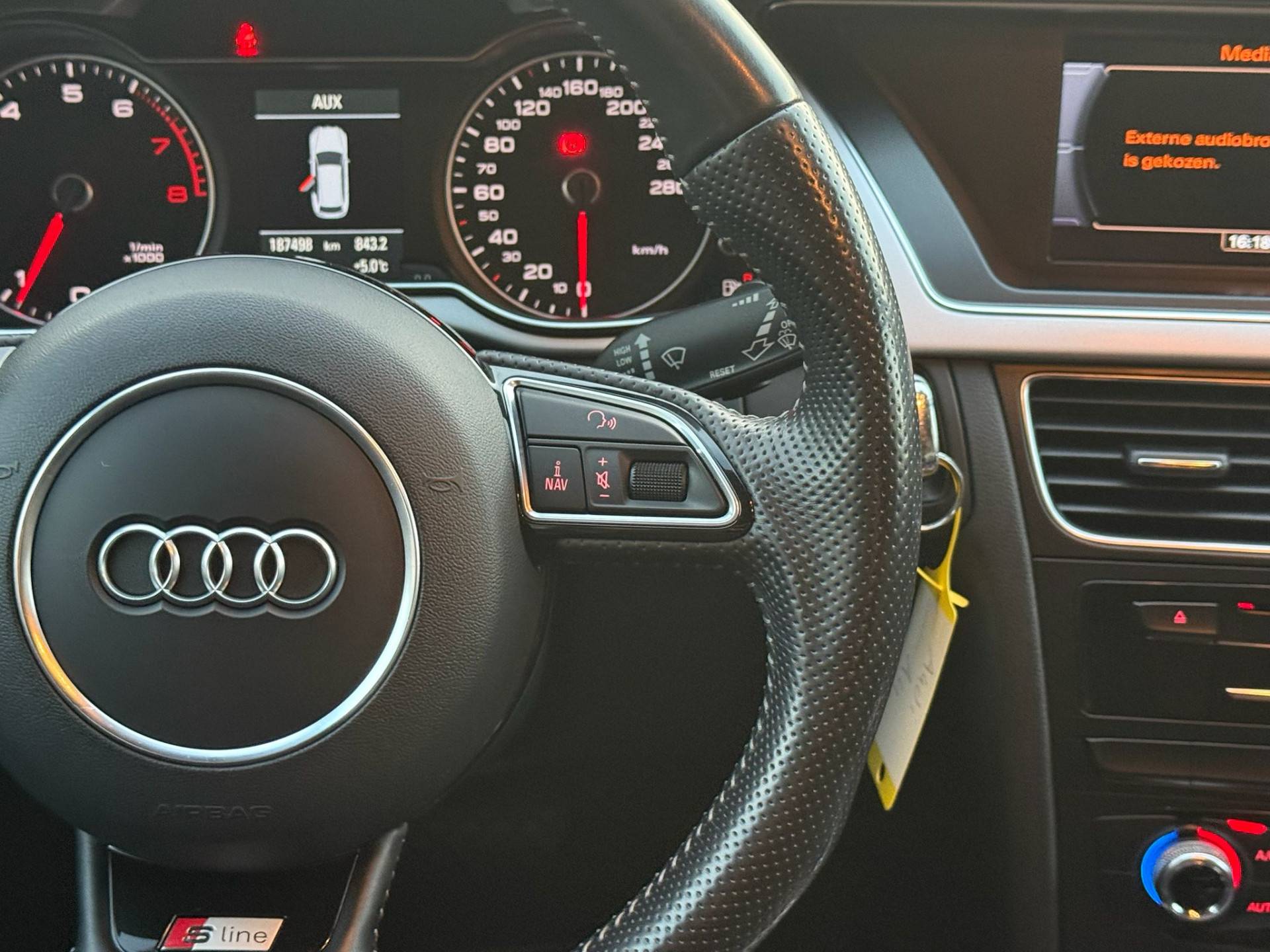 Het navigatiesysteem met harde schijf zorgt ervoor dat u snel en ontspannen op uw bestemming aankomt. Het spreekt voor zich dat een auto als deze ook van automatische airconditioning is voorzien. Het geluidssyteem in deze Audi A4 Avant is regelbaar met behulp van de audiobediening op het stuur. Met de aanwezige parkeersensoren weet u altijd zeker of het past. Het hoort bij een intelligente auto als deze dat hij zelf in staat is om zijn omgeving in de gaten te houden. Dat doet deze Audi met een automatisch inschakelbare verlichting en een regensensor. U bent in deze Audi ook voorzien van cruise control, lederen stuur, centrale deurvergrendeling met afstandsbediening en boordcomputer.