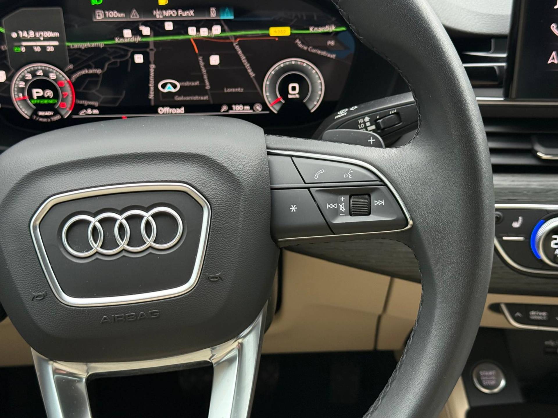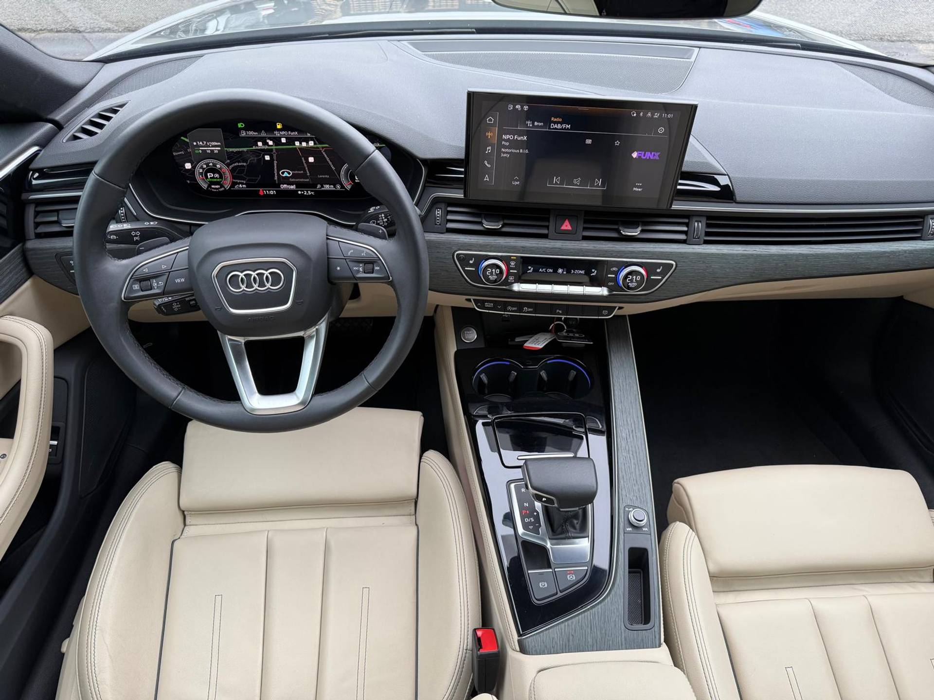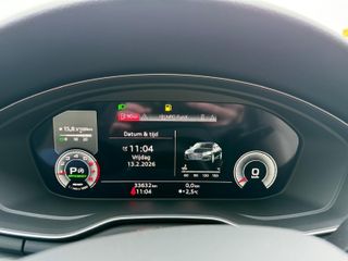 Het systeem controleert alle belangrijke functies en geeft die perfect weer via het digitale dashboard. Als u 'm vraagt 'hoe gaat het?' geeft deze auto zelf het antwoord. Via de app op uw smartphone. U checkt de meters waar u maar wilt, of activeert diverse functies alvast. U kunt tijdens de rit uw ogen steeds op de weg houden, want het audio-installatiesysteem (met DAB!) en het full map navigatiesysteem kunt u bedienen vanaf het stuur of met spraak. Nooit meer een lege smartphone: de draadloze telefoonlader laadt onderweg bij - zonder snoertjes! Bij de luxe van deze auto hoort ook electronic climate control. Deze Audi is voorzien van WIFI-hotspot, parkeersensoren achter, cruise control, sportstuurwiel, automatisch dimmende binnenspiegel en centrale deurvergrendeling met afstandsbediening.