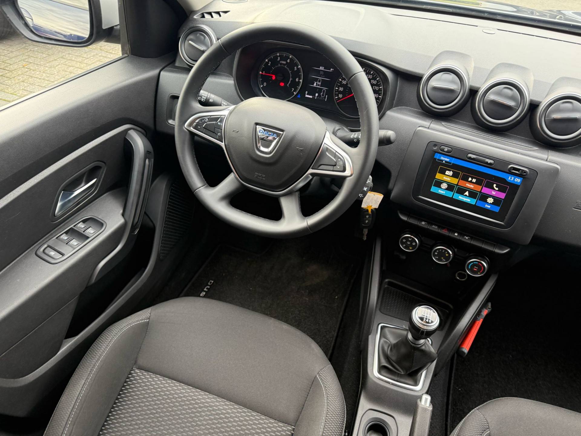 Prettig, altijd weten waar je moet zijn en hoe lang de rit nog duurt met het navigatiesysteem. Audio-aanpassingen doen zonder de weg uit het oog te verliezen? Daar zorgt de audiobediening op het stuur voor! Voor een storingvrije radio-ontvangst zorgt de ingebouwde DAB-ontvanger. Parkeersensoren zijn een handig hulpmiddel om parkeerschades te voorkomen. Nooit meer last van een slapende rechtervoet dankzij de uitgekiende cruise control! De Dacia is standaard voorzien van: airconditioning, lederen stuur, centrale deurvergrendeling met afstandsbediening, boordcomputer en lederen versnellingspook.