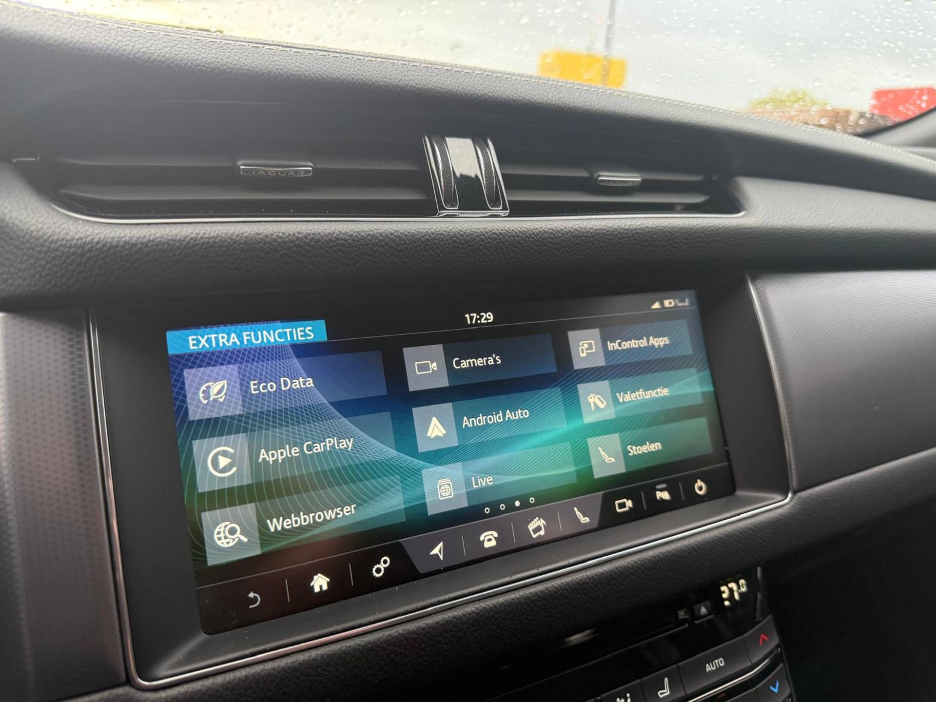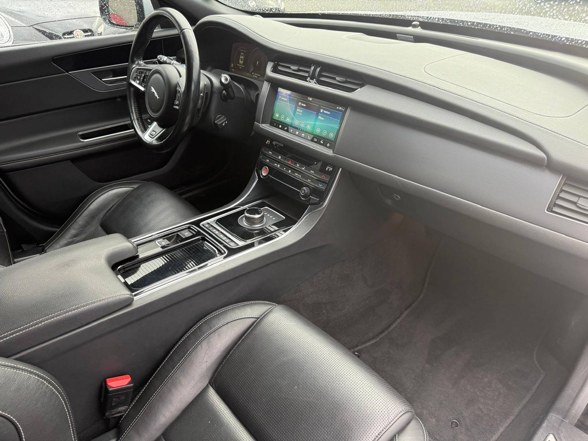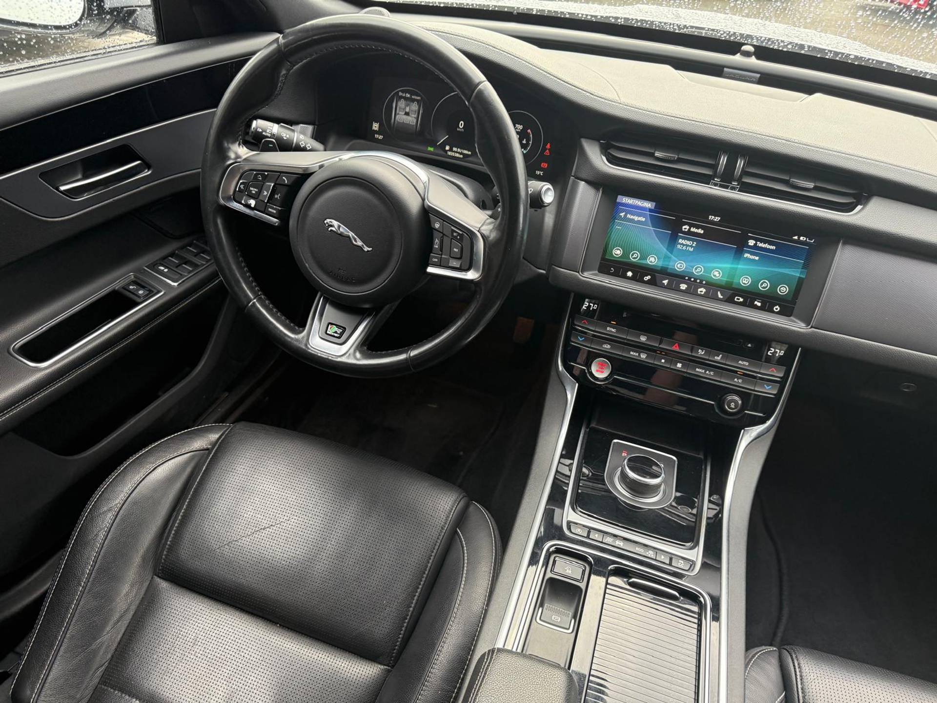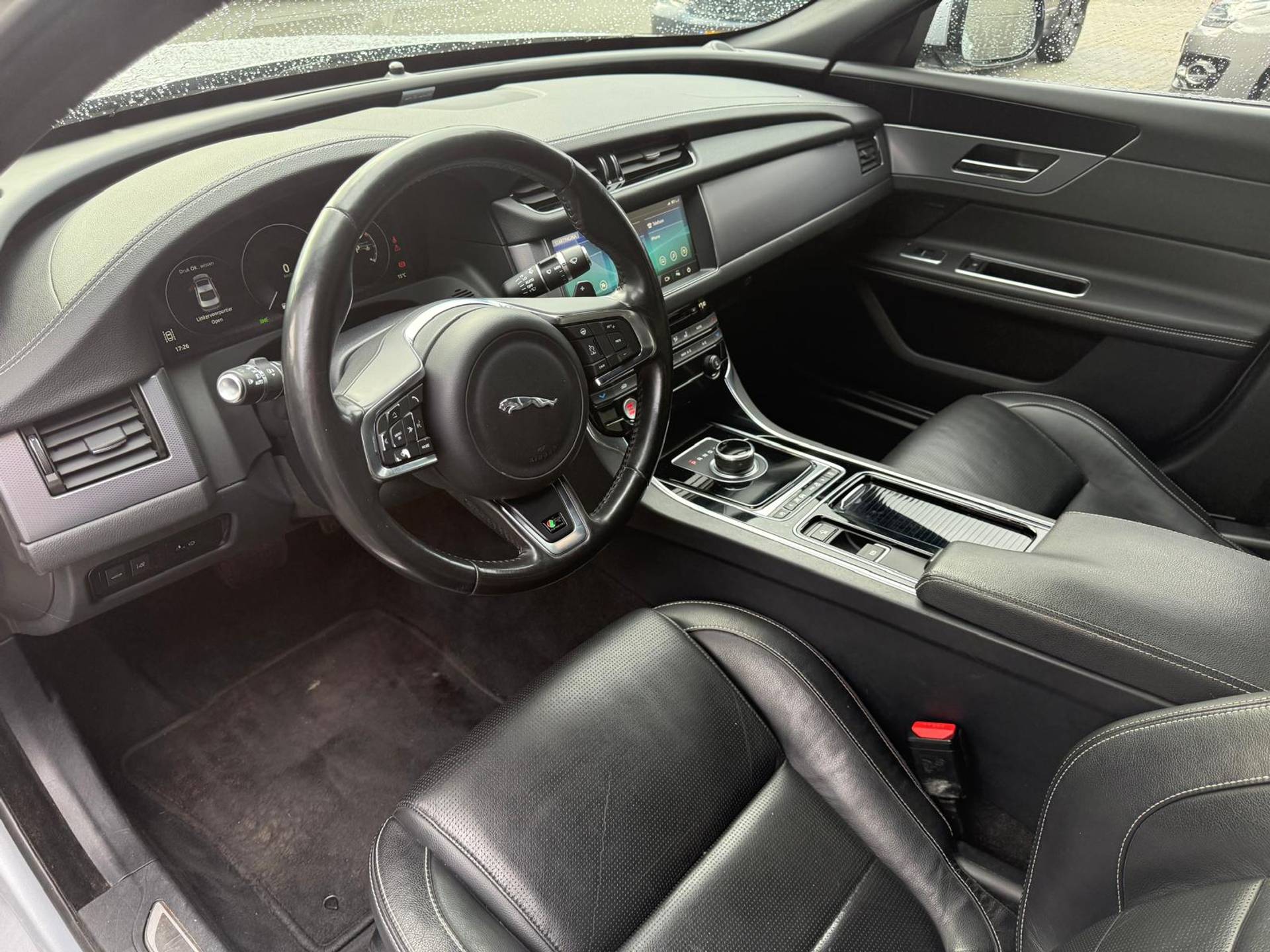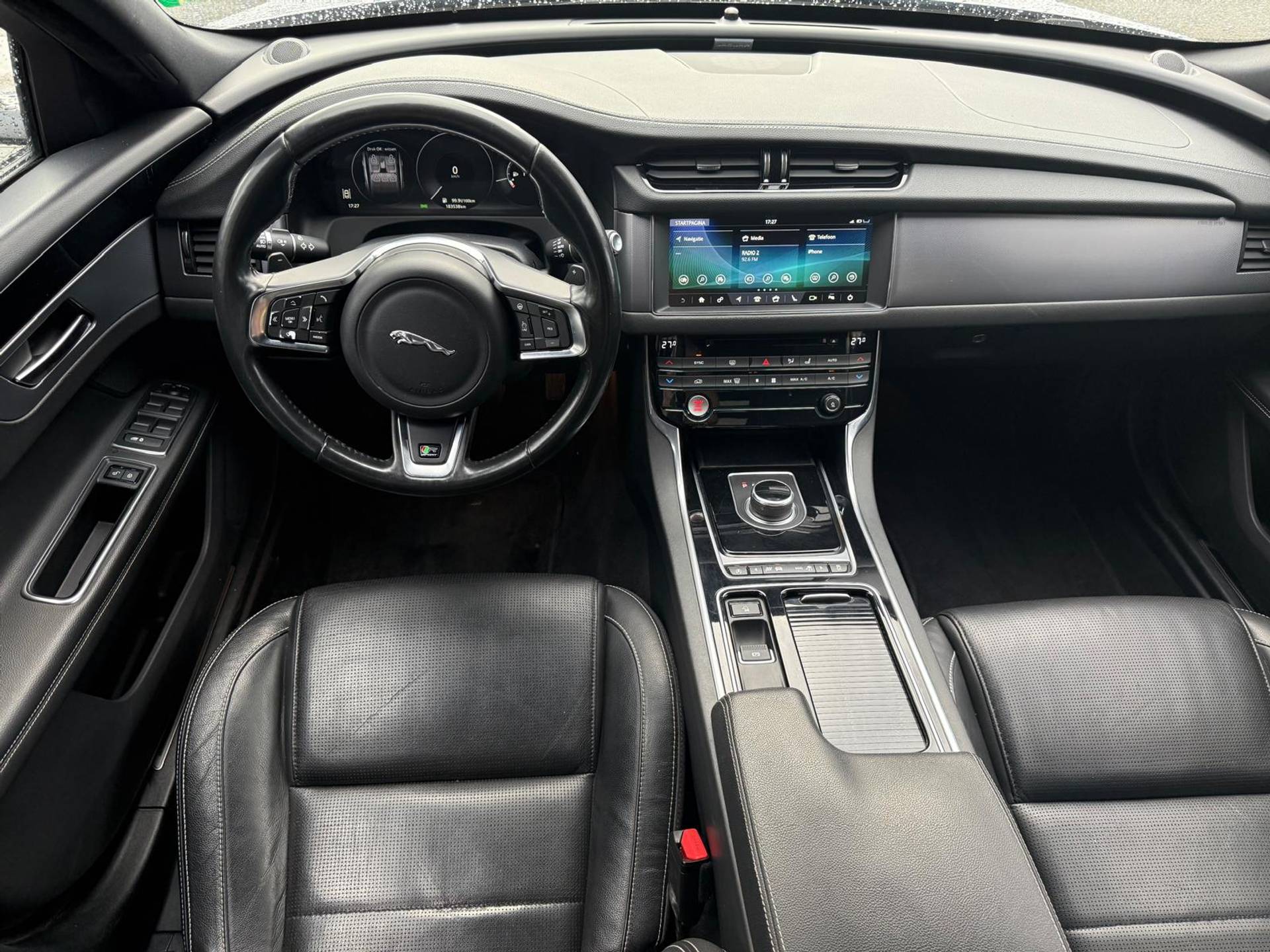 Zoals u mag verwachten van deze Jaguar XF is hij uitgerust met een reeks aan actieve veiligheidssystemen. Het Lane-keeping systeem let constant op en waarschuwt of corrigeert als u onoplettend over de lijnen van de rijstrook gaat. Een belangrijk veiligheidssysteem in deze auto is de vermoeidheidsherkenning, die u een duidelijk signaal geeft wanneer u achter het stuur in slaap dreigt te vallen. Wanneer u hard moet remmen, is elke decimeter verkorting van de remweg essentieel. Voor extra remkracht zorgt dan de Brake Assist. Verder is deze auto uitgerust met hill hold functie en bandenspanningcontrolesysteem.