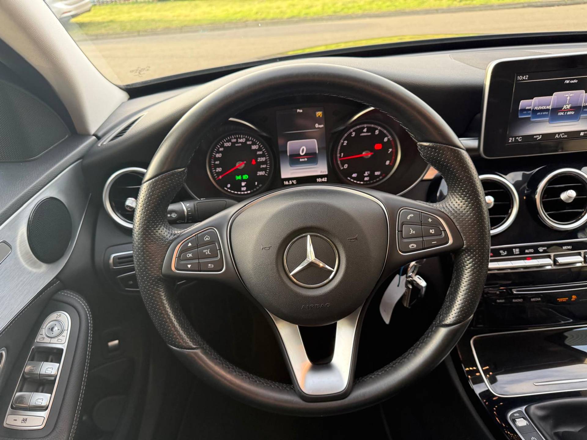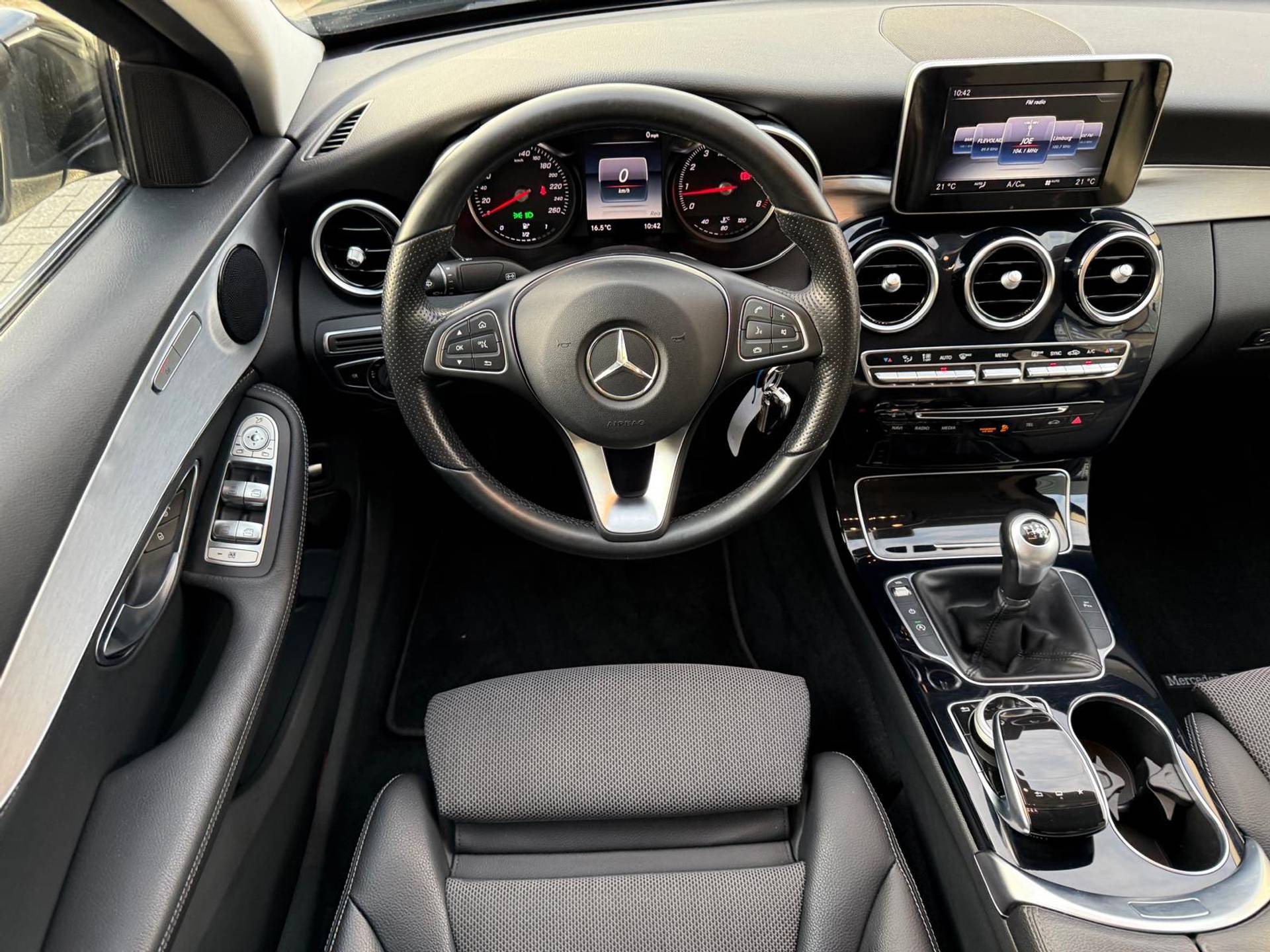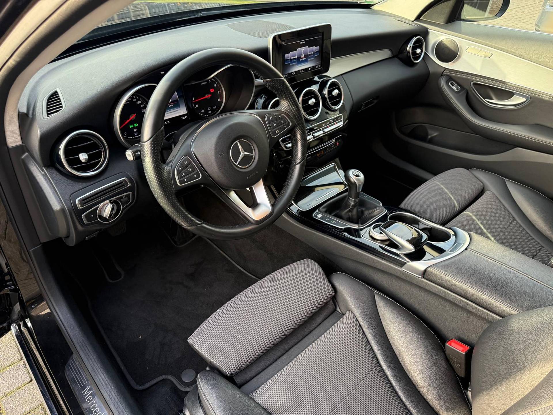Een smartphone met internetverbinding legt eenvoudig overal contact met de auto. U kunt functies activeren en de conditie van de auto monitoren. Naast de routeinformatie van het navigatiesysteem met harde schijf kunt u muziek via het audio-installatiesysteem ook online beluisteren via bluetooth. Deze Mercedes-Benz C-klasse is voorzien van sensoren aan de achterzijde om een achteropkomend verkeer waarschuwing te geven als de afstand tussen u en een achterligger te klein is. Automatische airconditioning verwarmt of koelt het interieur met een druk op de knop. De parkeersensoren vertellen precies hoe ver u kunt gaan. Hoe dichter op een obstakel, hoe sneller de piepjes. Ook regensensor, cruise control met snelheidsbegrenzer en centrale deurvergrendeling met afstandsbediening horen tot de voorzieningen op deze auto.