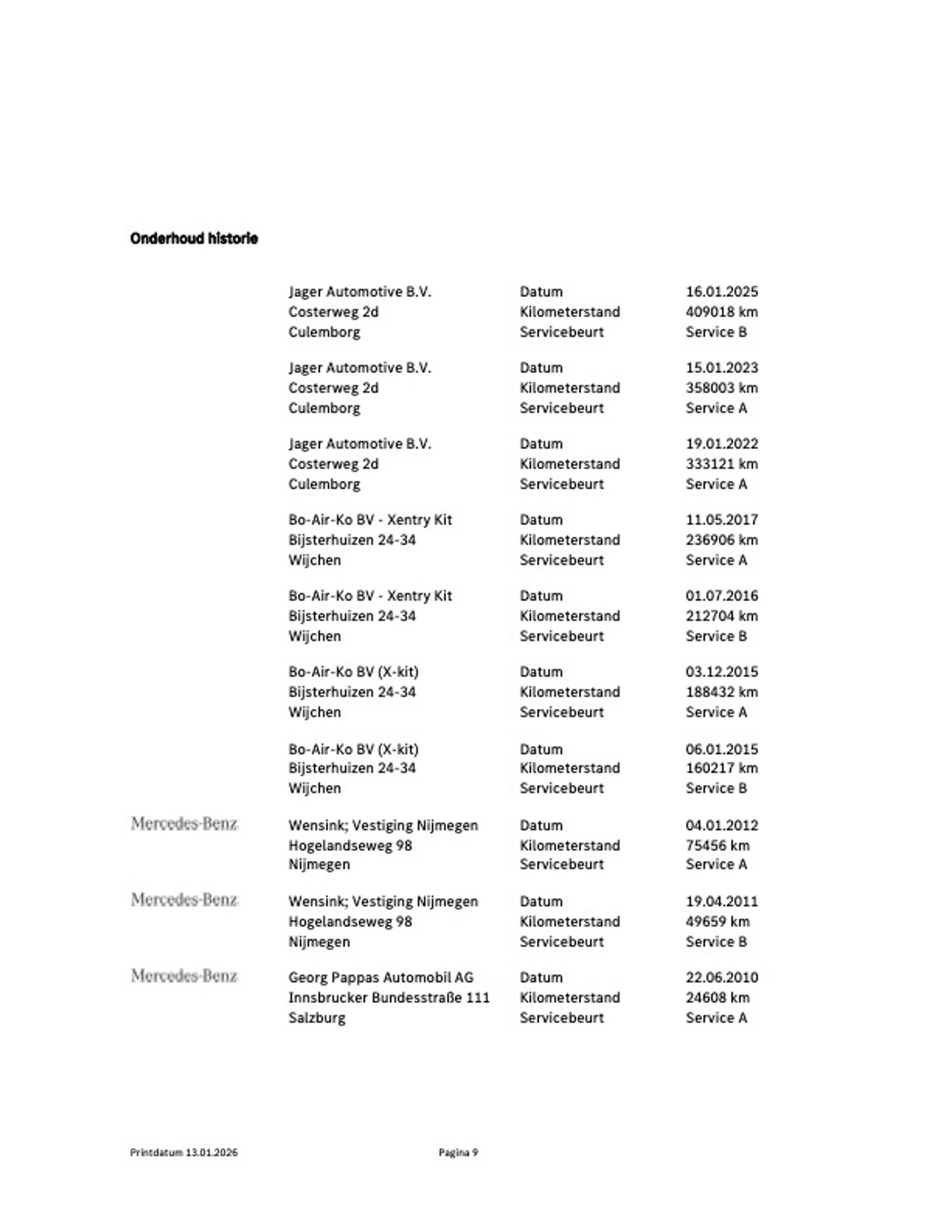 – Onderhoudsbeurt volgens fabrieksopgaaf