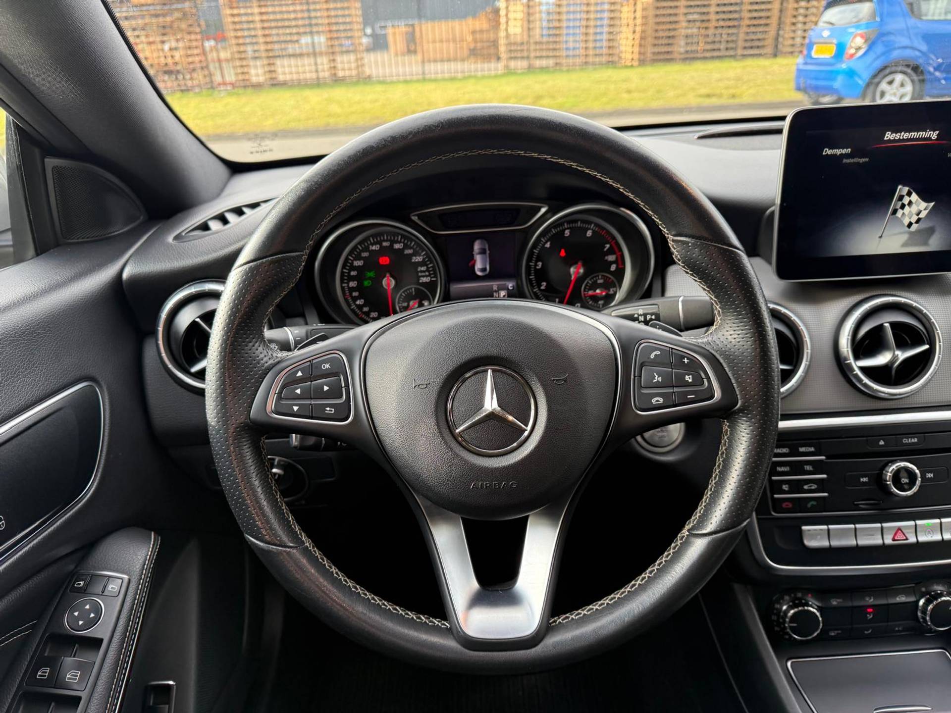 Bij het inparkeren laat de achteruitrijcamera precies zien hoeveel meter... decimeter... centimeter ruimte er nog is! Dankzij Connected Services heeft u overal en altijd uw dashboard op zak. Alle belangrijke functies zijn te checken via de app. Tijdens de rit bedient u het audio-installatiesysteem en het full map navigatiesysteem met de knoppen op het stuur. De achteropkomend verkeer waarschuwing bewaakt de afstand tot achterliggers en geeft een signaal als er te weinig ruimte is. Natuurlijk is een complete auto als deze ook voorzien van sensoren die de omgeving in de gaten houden. Deze Mercedes-Benz heeft niet alleen een automatisch inschakelbare verlichting aan boord, maar ook een regensensor. Deze Mercedes-Benz is voorzien van cruise control, airconditioning, lederen stuur, centrale deurvergrendeling met afstandsbediening en boordcomputer.