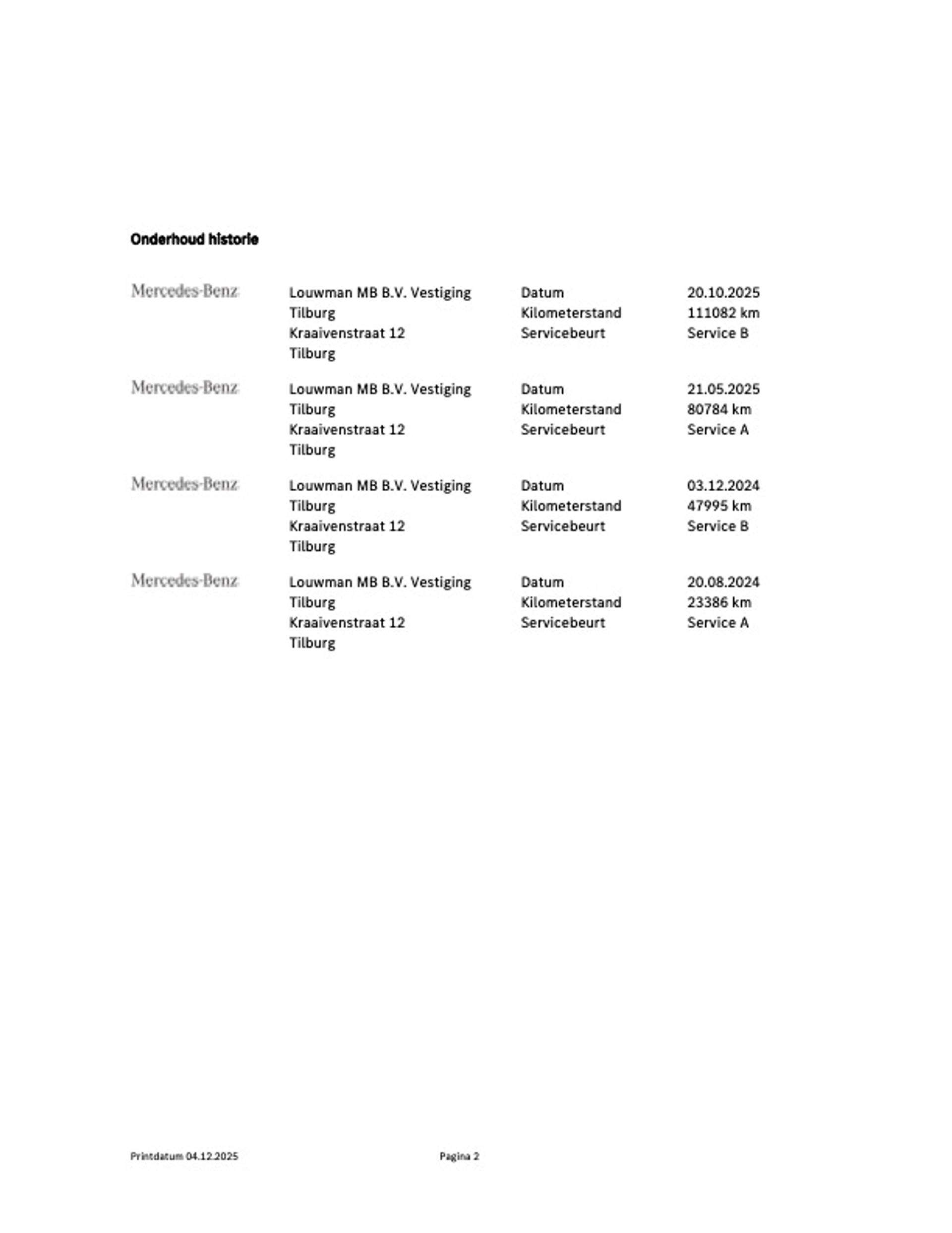 – Onderhoudsbeurt volgens fabrieksopgaaf