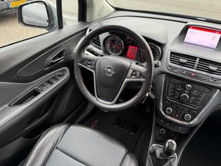 Het audio-installatiesysteem is handig te bedienen vanaf het stuurwiel, wat bijdraagt aan een veilige autorit. Dankzij electronic climate control is het interieur behaaglijk warm of verfrissend koel. Een plekje vinden in de binnenstad is één, inparkeren is twee. Voor dat laatste heeft deze Opel Mokka prima parkeersensoren die u een handje helpen. In deze Opel kunt u zich concentreren op het verkeer, terwijl de auto de omgeving voor u in de gaten houdt. Een automatisch inschakelbare verlichting zorgt dat de verlichting aangaat als het donkerder wordt - in tunnels bijvoorbeeld - en de regensensor schakelt de ruitenwissers in als het nodig is. U hoeft er niets aan te doen. Met de cruise control komt u bijna nog fitter aan dan u vertrekt. De uitrusting van deze auto is met automatisch dimmende binnenspiegel, lederen stuur, centrale deurvergrendeling met afstandsbediening en boordcomputer behoorlijk compleet.