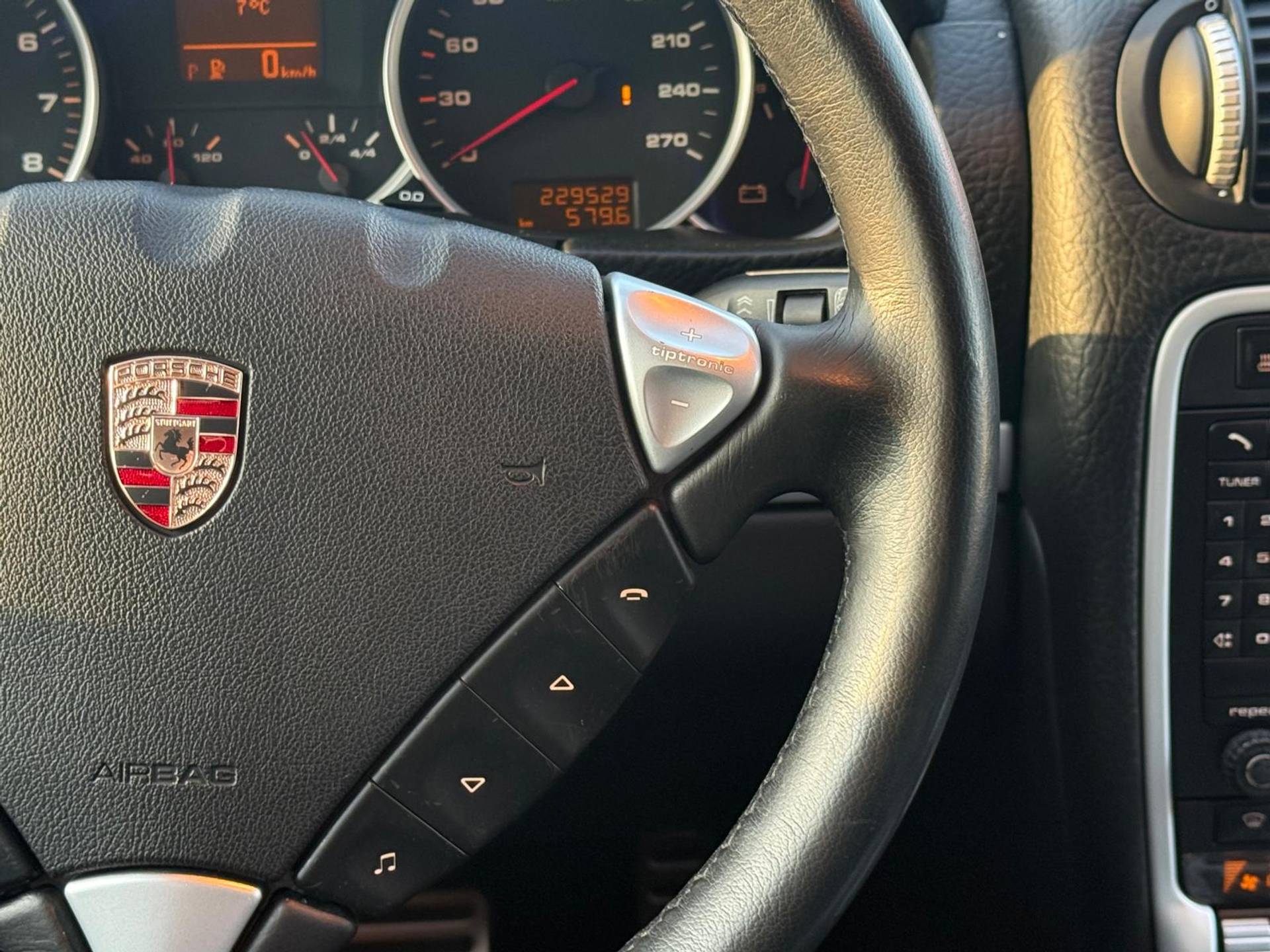 Een rit met de Porsche Cayenne is telkens weer een feestje, en dankzij zijn rijcomfort stappen u en uw passagiers na iedere rit verkwikt weer uit. Een achtcilinder benzinemotor en een automatische transmissie zorgen samen voor een snelle en comfortabele rijervaring. Kijk, dat noemen we nou stijlvol: een fraai lederen interieur. Gecombineerd met het heerlijke gemak van de elektrisch bedienbare achterklep. Bij de rijke uitrusting horen ook elektrisch verstelbare voorstoelen, 18 inch lichtmetalen velgen, warmtewerend glas en in delen neerklapbare achterbank.
