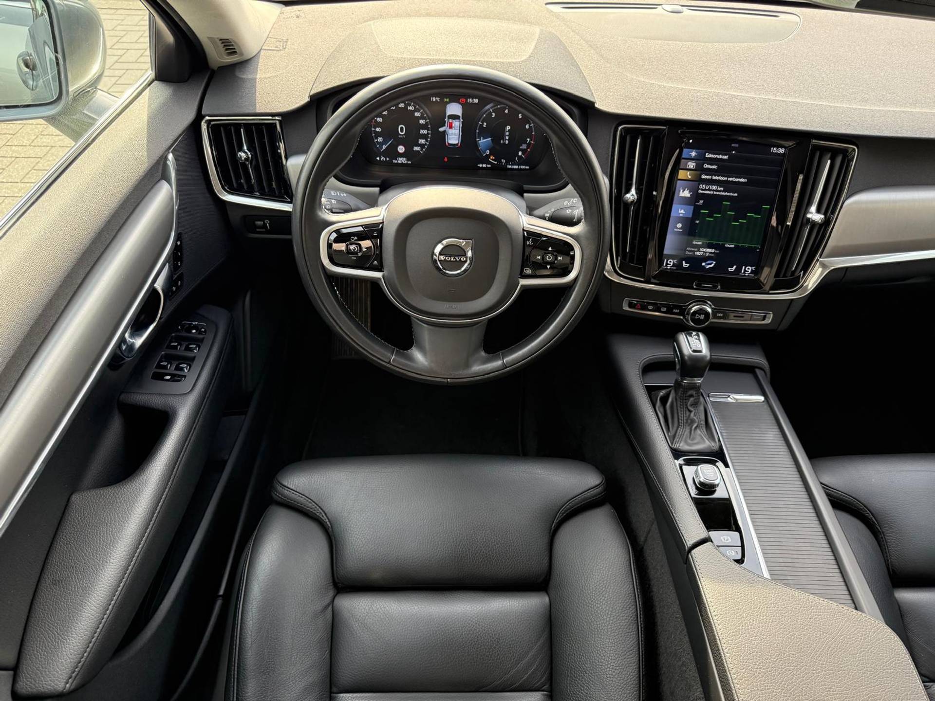 U rijdt gemakkelijk, comfortabel en zonder zorgen met deze Volvo V90. De aandrijving van deze Volvo wordt verzorgd door een viercilinder benzinemotor en een automatische transmissie. Dit mag je gerust een luxe uitvoering noemen: een lederen interieur én een elektrisch bedienbare achterklep! Voorin is het 's winters genieten met de verwarmbare voorstoelen voor zowel bestuurder als bijrijder. Natuurlijk behoren 18 inch lichtmetalen velgen, LED koplampen, in delen neerklapbare achterbank, LED-achterlichten, verstelbare lendensteunen en snelheidsafhankelijke stuurbekrachtiging ook tot de uitrusting van deze complete auto.